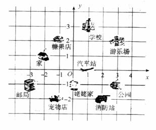 ⑶连接他在⑵中经过的地点,得到的图形你觉得像什么?