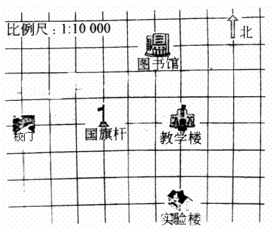 第10题. 如图,这是一所学校的平面示意图,建立适当的平面直角坐标系,写出教学楼、图书馆、校门、实验楼、国旗杆的位置.类似地,你能画出你自己学校的平面示意图吗?