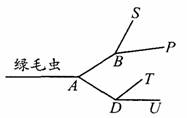 又如,如图,一个树叉,一绿毛虫要去吃树叶.如果绿毛虫选择叉枝是等可能的,求下列事件发生的概率:
