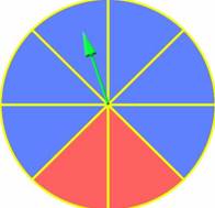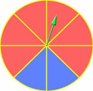 分析:(1)两个转盘都被分成8个等积的扇形, 这些扇形除颜色外完全相同,指针指向任何一个扇形的可能性都相等.