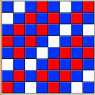 例2 在4m远处向地毯扔沙包(如图12-5地毯中每一块小正方形除颜色外完全相同),假设沙包击中每一块小正方形是等可能的.扔沙包1次,击中红色区域的概率多大?