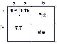 的长方形荒地上建成一套两室一厅一厨一卫的房子。其中客厅面积为