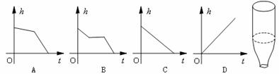 ⑵某兴趣小组做实验,将一个装满水的啤酒瓶倒置(如图),并设法使瓶里的水从瓶中匀速流出.那么该倒置啤酒瓶内水面高度
