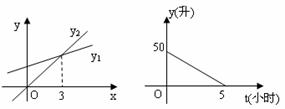 ⑵汽车工作时油箱中的燃油量y(升)与汽车工作时间t(小时)之间的函数图象如下中图所示,汽车开始工作时油箱中有燃油 升,经过 小时耗尽燃油,y与x之间的函数关系式为