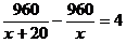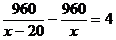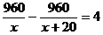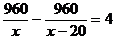 1.(02苏州)某农场挖一条960m长的渠道,开工后每天比原计划多挖20m,结果提前4天完成了任务.若设原计划每天挖xm,则根据题意可列出方程( )