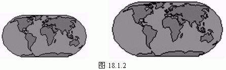 图18.1.2是两张大小不同的世界地图,左边的图形可以看作是右边的图形缩小得来的.由于不同的需要,对某一地区,经常会制成各种大小的地图,但其形状(包括地图中所描绘的各个部分)肯定是相同的.