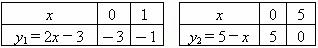 例4 已知两条直线y1=2x-3和y2=5-x.