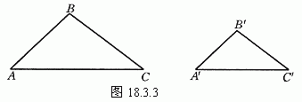 如图18.3.3,任意画两个三角形(可以画在本书最后所附的格点图上),使其三对角对应相等.用刻度尺量两个三角形的对应边,看看两个三角形的对应边是否成比例.你能得出什么结论?