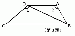 (3)如图所示,在梯形ABCD中,AB∥DC,且∠1=∠2,若DC=4,AB=8,求BD的长。