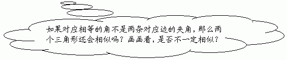 (对这一问题,学生可以从对应角相等,或从对应边成比例进行思考,对学生各种解决问题的方法都要给予鼓励。)