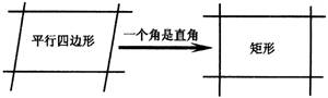 制一个活动的平行四边形教具,堂上进行演示图,使学生注意观察四边形角的变化,当变到一个角是直角时,指出这时平行四边形是矩形,使学生明确矩形是特殊的平行四边形(特殊之处就在于一个角是直角,深刻理解矩形与平行四边形的联系和区别).