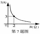 7.[05宁德]在电压一定的情况下,电流I(A)与电阻R(Ω)之间满足如图所示的反比例函数关系,则I关于R的函数表达式为________。