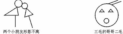 7、请以给定的图形“○○、△△、=”(两个圆、两个三角形、两条平行线段)为构件,尽可能多地构思独特且有意义的图形,并写出一两句贴切、诙谐的解说词.如图就是符合要求的两个图形,你还能构思出其他的图形吗?比一比,看谁想得多.(至少画两个)