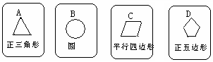 5、有四张背面相同的纸牌A,B,C,D,其正面分别画有四个不同的几何图形(如图).小华将这4张纸牌背面朝上洗后摸出一张,放回洗后再摸出一张.求:两次摸出的牌面图形都既是中心对称图形又是轴对称图形的纸牌的概率.