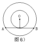 18、如图(6),以O为圆心的两个同心圆中,大圆的弦AB是小圆的切线,若大圆半径为10cm,小圆半径为6cm,则弦AB的长为______________。