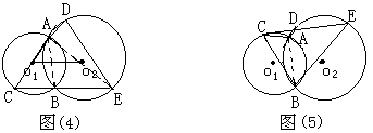 例2:如图(4),⊙o1与⊙o2相交于A、B,直线Ao1交⊙o1于C,交⊙o2于D,CB的延长线交⊙o2于E,若CD=10,DE=6,求⊙o2的长。