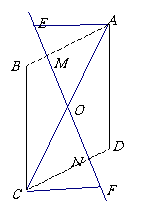 ⑵如图,O为平行四边形ABCD的对角线AC的中点,过点O作一条直线分别与AB、CD交于点M、N,点E、F在直线MN上,且OE=OF。