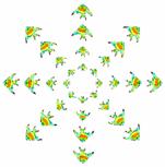 分析:观察的角度不同,答案就不同.如:它可以看作是一排鱼顺时针旋转45°角,连续旋转八次得到的旋转图形;它还可以看作位似中心是图形的正中心,相似比是4∶3∶2∶1的位似图形,…….