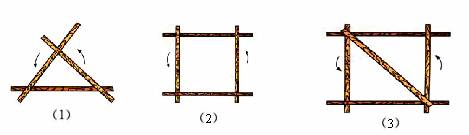 如图⑶斜钉一根木条的四边形木架的形状不会改变.想一想其中的道理是什么?