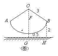 秋千拉绳长3米,静止时踩板离地面0.5米,某小朋友荡秋千时,秋千在最高处踩板离地面2米(左右对称),如图5所示,求该秋千所荡过的圆弧长是多少?