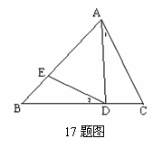 17.(8分)已知:如图,ΔABC中,AD=DB,∠1=∠2.求证:ΔABC∽ΔEAD.