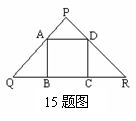 15.如图,正方形ABCD内接于等腰ΔPQR,∠P=900,则PA∶AQ=__________.