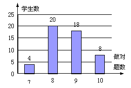 8、数学老师布置10道选择题作为课堂练习,课代表将全班同学的答题情况绘制成条形统计图(如图),根据统计图,全班同学总数及平均每位同学答对的题数分别为………( ).
