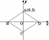 2.如图,在平面直角坐标系中,四边形ABCD是菱形,∠ABC=600,点A的坐标是(0,2),求点B、C、D的坐标。