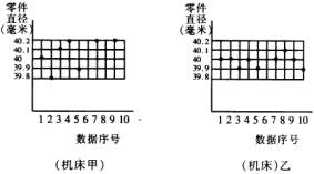 知道,机床甲生产的10个零件直径比机床乙生产的10个零件直径波动要大.
