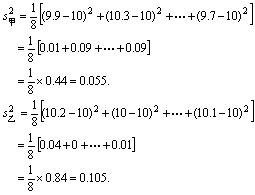 乙:10.2 10 9.5 10.3 10.5 9.6 9.8 10.1