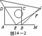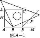 ⑵如图14―2,当点E在AB边上的任意位置时,请你在AD边上找到一点N,使得NE=BF,进而猜想此时DE与EF有怎样的数量关系。