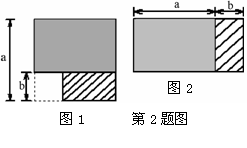 2、从边长为a的正方形内去掉一个边长为b的小 正方形(如图1),然后将剩余部分剪拼成一个矩形(如图2),上述操作所能验证的等式是( )