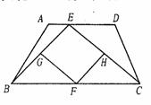 21.如图,等腰梯形ABCD中,AD∥BC,点E是线段AD上的一个动点(E与A、D不重合),G、F、H分别是BE、BC、CE的中点.