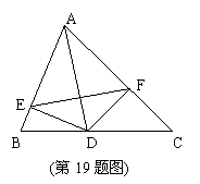 (本题满分9分)如图,AD是△ABC的角平分线,DE,DF分别是△ABD和△ACD的高.AD和EF有什么关系?请说明理由.