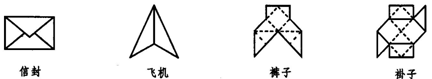 如下图是用纸折叠成的图案,其中是轴对称图形的有