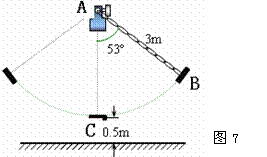 如图7所示,秋千链子的上端固定于A处,秋千链子的长度为3m,静止时的秋千踏板(大小忽略不计)C处距地面0.5m.秋千向两边摆动时,若最大摆角(摆角指秋千链子与铅垂线的夹角)约为