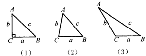 49.如图,△ABC中,BC=a,AC=b,AB=c,若∠C=90°,如图18-2(1),根据勾股定理,则a2+b2=c2,若△ABC不是直角三角形,如图(2)和图(3),请你类比勾股定理,试猜想a2+b2与c2的关系,并证明你的结论.