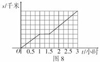 3.(本题12分)如图8,是一个路程随时间变化的图象,请你根据图中所提供的信息,结合实际写出一个生活片断.(你可以在s轴上标出一些数据)