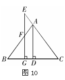 (本题10分)如图10,已知△ABC,E在CA的延长线上,EG⊥BC于G,AD⊥BC于D,若AD平分∠BAC,∠BFG=36°,求∠E的度数.
