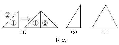 (本题13分)如图13(1),正方形通过剪切可以拼成三角形,方法如下: