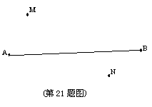 21、一辆汽车在直线形公路AB上由A向B行驶,M、N分别是位于AB两侧的村庄,设汽车行驶到公路AB上点P位置时,距离村庄M最近,行驶到公路AB上Q点时,距离村庄N最近,请在图中标出点P、Q的位置(保留作图痕迹)