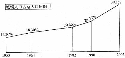 10、城镇人口占总人口比例的大小表示城填化水平的高低。由下面统计图可知,我国城镇化水平提高最快的时期是 ( )