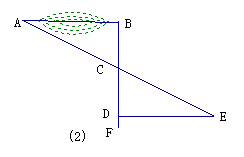 (Ⅱ)如图(2)所示,选过B点作AB的垂线BF,再在BF上取C、D两点,使得BC=CD,接着过点D作BD的垂线DE,交AC的延长线于E,则测出了DE的长即是AB的长。
