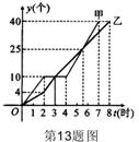 13.2008年罕见雪灾发生之后,灾区急需帐篷。某车间的甲、乙两名工人分别同时生产同种帐篷上的同种零件,他们一天生产零件y(个)与生产时间t(时)的函数关系如图所示。