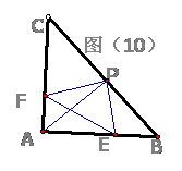 10、如图(10),在△ABC中,AB=AC,∠BAC=90°,直角∠EPF的顶点P是BC的中点,两边PE、PF分别交AB、AC于点E、F,当∠EPF在△ABC内绕点P旋转时,下列结论错误的有( )