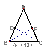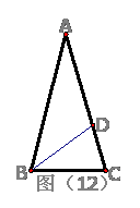 12、如图(12)在等腰△ABC中,AB=BC,∠A=360,BD平分∠ABC,问该图中等腰三角形有___个