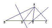 18、已知,如图,在△ABC中,BC=8, AB的中垂线交BC于D,AC的中垂线交BC于E,则△ADE的周长等于 .