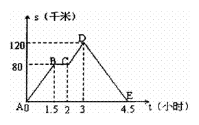 如图中的图象(折线ABCDE)描述了一汽车在某一直线上的行驶过程中,汽车离出发地的距离s(千米)和行驶时间t(小时)之间的函数关系,根据图中提供的信息,给出下列说法:①汽车共行驶了120千米;②汽车在行驶途中停留了0.5小时;③汽车在整个行驶过程中的平均速度为 千米/时;④汽车自出发后3小时至4.5小时之间行驶的速度在逐渐减少.其中正确的说法共有( )