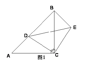22.(10分)两个等腰直角⊿ABC和等腰直角⊿DCE如图1摆放,其中D点在AB上,连结BE。