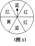 如图1,一个可以自由转动的转盘被等分成6个扇形区域,并涂上了相应的颜色,随机转动转盘,转盘停止后,指针指向红色区域的概率是(※)